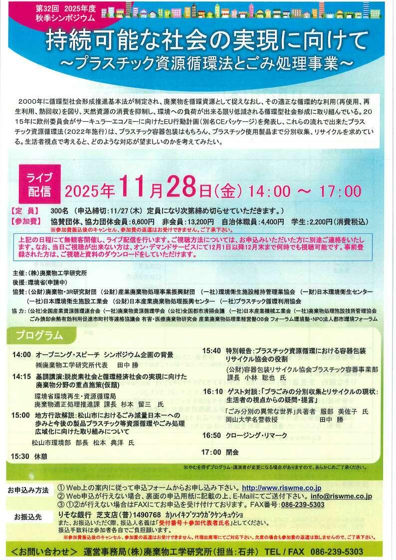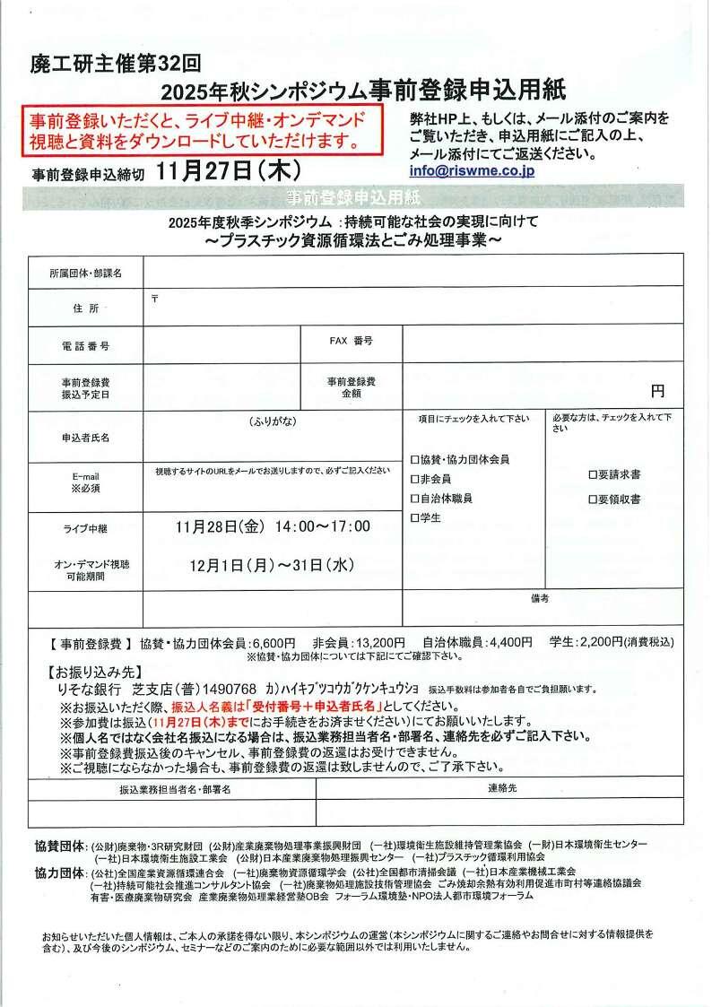 (株)廃棄物工学研究所主催 2025年秋シンポジウムのご案内